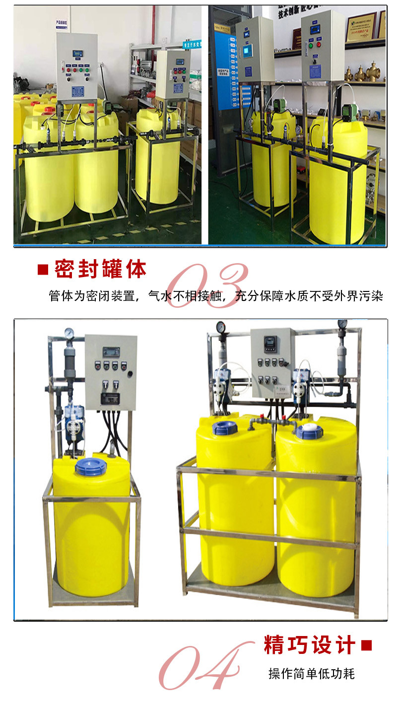 自動(dòng)加藥裝置是生產(chǎn)用于電廠的給水、爐水、循環(huán)水、廢水等處理,也可用于石油、化工、環(huán)保、供水系統(tǒng)等行業(yè)。